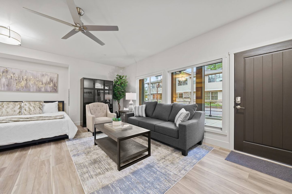 Apartament luxos cu 1 dormitor și 1 baie de 750 de metri pătrați. . complet renovat de sus în jos, cu o bucătărie gourmet nouă; mobilier/opere de artă de lux noi. Această unitate privată de la parter este situată pe un lac Man-Made (chiar în fața ușii de la intrare!) la Tualatin Commons din centrul orașului Tualatin, Oregon. Spațiul de parcare dedicat se află pe o proprietate privată; și există o parcare GRATUITĂ de 3 ore în oraș, la doar câțiva metri distanță.