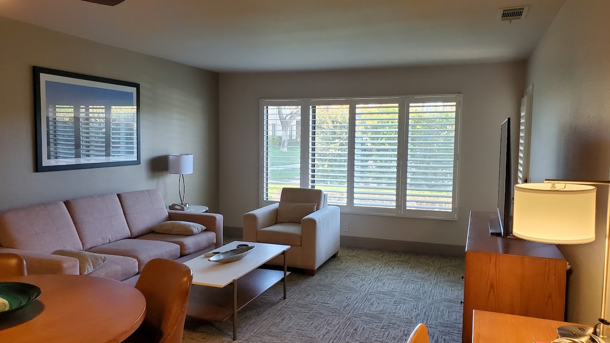 Marriott's Shadow Ridge I - The Villages is located 15 miles away from the Coachella festival grounds, and is close to several of the shuttle pick-up & drop-off locations. After a day at Coachella, you'll enjoy this spacious 1-bedroom villa with a full kitchen, separate living and sleeping areas, flat-screen TV's, and a washer/dryer. The resort features 4 pools, poolside bars, a waterslide, restaurants, golf, fitness center, and more! FREE WI-FI & FREE PARKING! NO RESORT FEES!