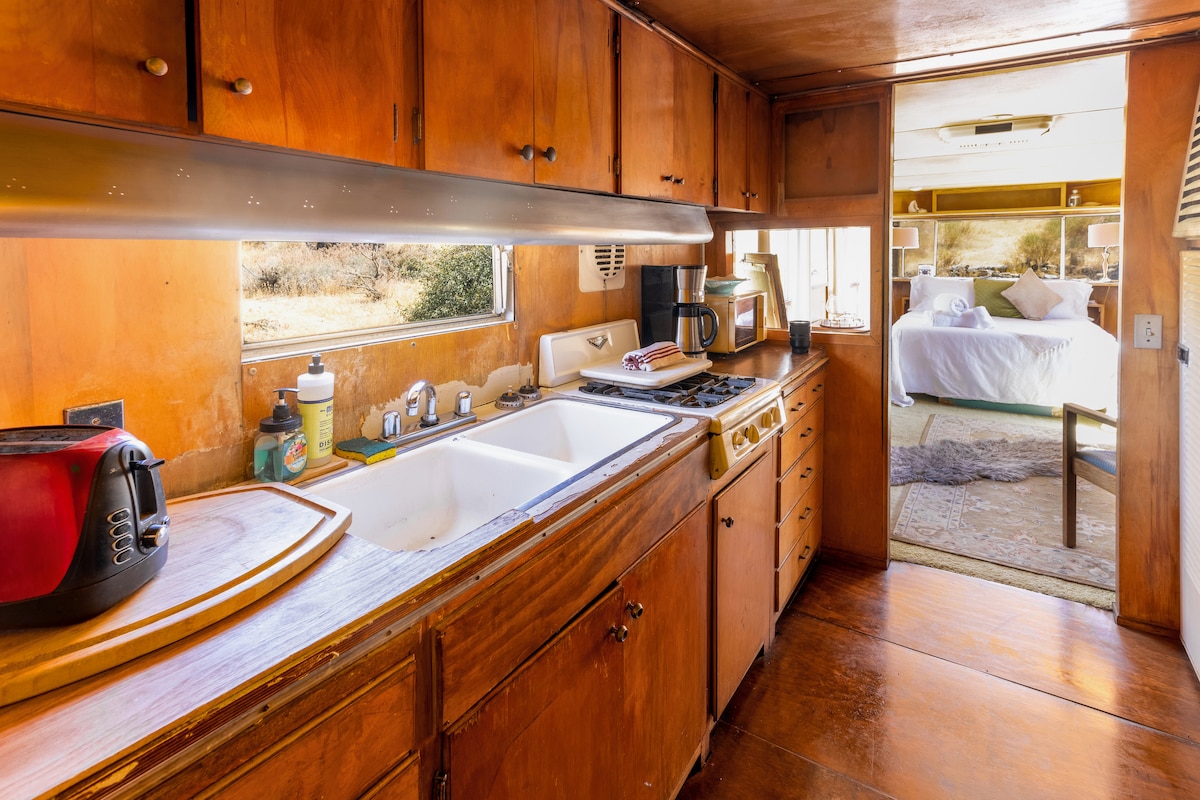 Ascuns într-un buzunar izolat, ascuns, lângă Valea Yucca, Spartanul oferă o experiență cu adevărat unică în deșert. Evadează în această remorcă de epocă amplasată pe o enclavă artistică de 6 acri, cu o piscină comună uimitoare și o cadă cu hidromasaj. Remorca are o baie privată și o chicinetă. Plimbă-te pe drumețiile din apropiere sau gătește-ți inima în bucătăria comună în aer liber complet aprovizionată. Mediul este creativ, calm și comun - un loc în care să te conectezi profund cu natura, cu tine și cu alți oameni interesanți.