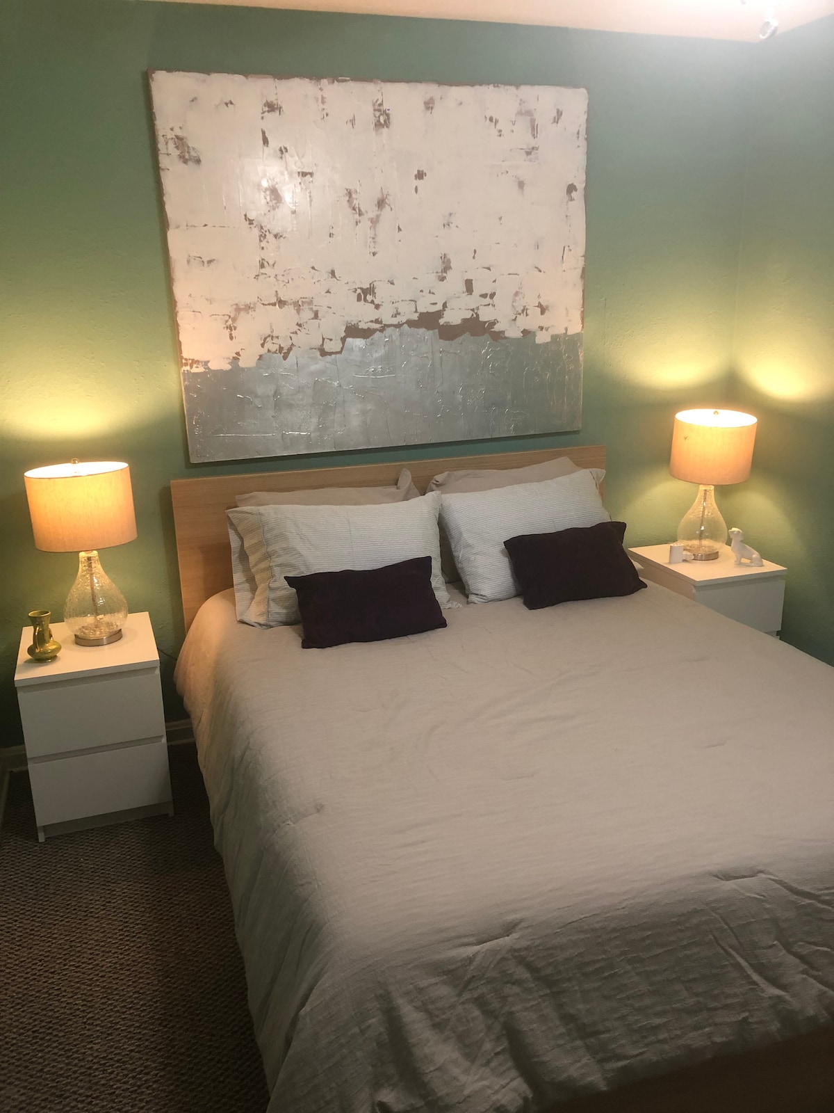 Enjoy a stylish art inspired experience at this centrally-located place. This 700 sq ft ( 65 sq m) apartment was inspired by the previous long term tenant who was from Serbia. This self-proclaimed gypsy was all about the Bohemian vibe with edgy colors, light wood and funky decor. Located in Riverside, this apartment is located walking distance to many well established restaurants and bars and the interstates. This is a self-contained one bedroom apartment that is 1/2 of a duplex. (side by side)