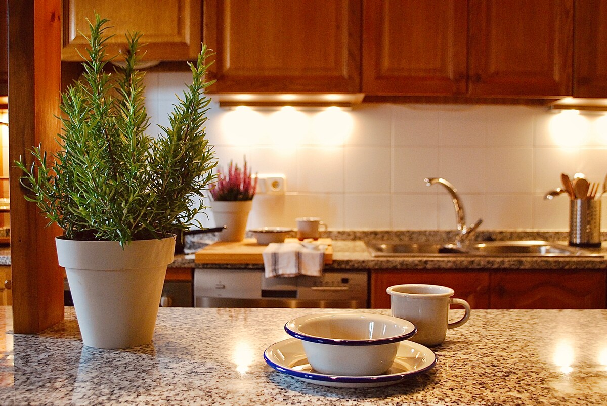 Apartament confortabil la parter cu grădină privată și șemineu în La Cerdaña pentru până la 5 persoane. 1 km de Llívia și 7 km de Puigcerdà Ideal pentru copii. Complet condiționat. WIFI. Bucătărie complet echipată. Parcare privată inclusă. Lenjerie de pat, prosoape, săpun și șampon incluse. Orientarea spre sud. Pentru a te bucura de munți și natură sau pentru a face un tur gastronomic în zonă. Ideal pentru schi, foarte aproape de Font Romeu, Masella-Molina, Les Angles etc.