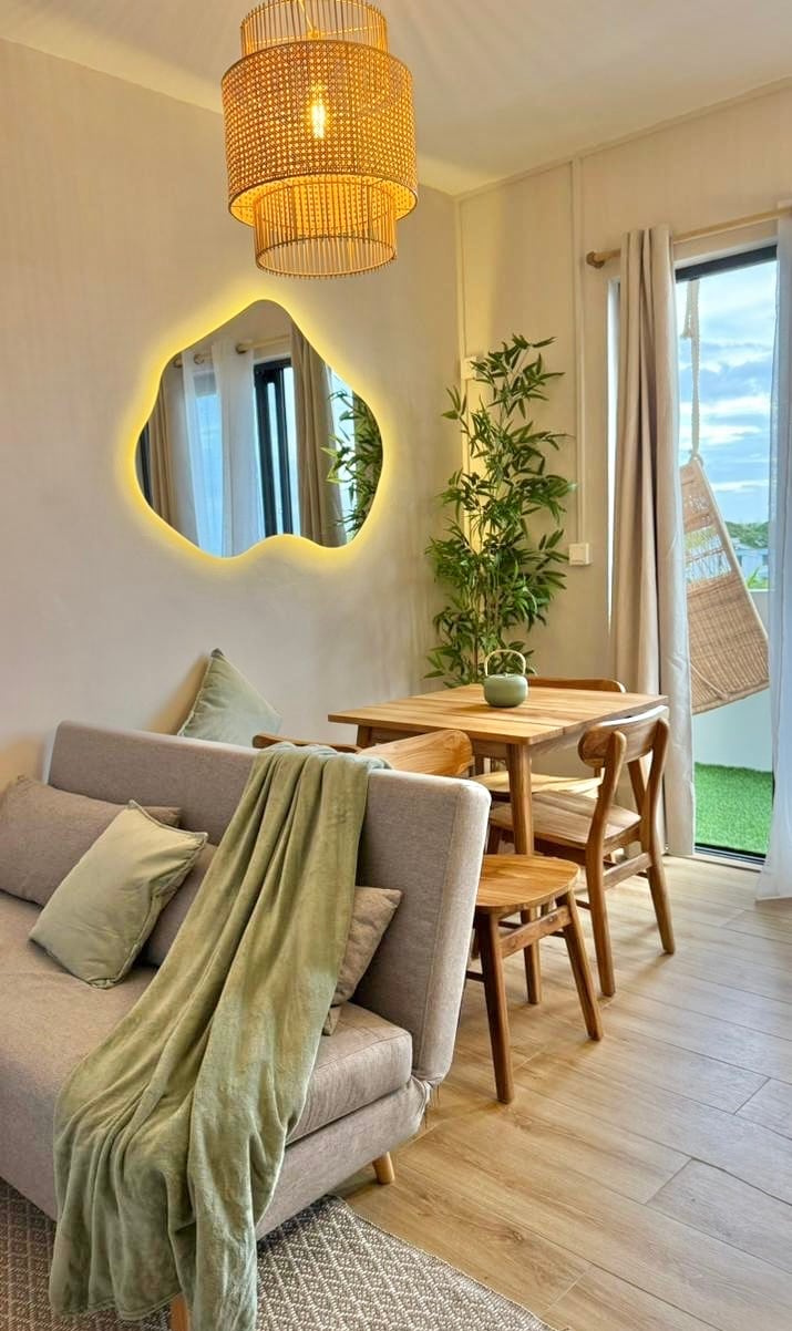 Explorează apartamentul nostru încântător de la primul etaj, cu aer condiționat, conceput cu gândul la familia ta. Această unitate spațioasă poate găzdui patru persoane, oferind două dormitoare cu aer condiționat, o bucătărie americană complet utilată, o zonă de living confortabilă, o verandă generoasă și o grădină amenajată meticulos. Convenabil situat la o distanță de mers pe jos de o plajă tropicală uluitoare și de laguna turcoaz (200 de metri) și supermarketuri (400 de metri), oferă acces ușor la dotările esențiale.