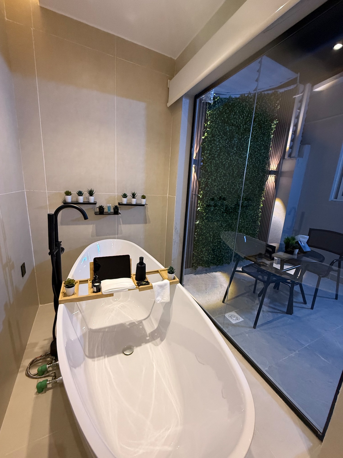 Bine ai venit în apartamentul nostru frumos proiectat, spațios, care îmbină luxul modern cu confortul suprem. Perfectă pentru familii, cupluri sau grupuri mici, această locuință oferă o ședere cu adevărat unică. Răsfață-te în acest refugiu luxos, cu o sală de cinema privată cu TV de 85 inch, o zonă de living spațioasă și un dormitor matrimonial uimitor, cu o cadă de sine stătătoare. Perfect pentru relaxare și divertisment - Dormitorul principal - Al doilea dormitor - Living - Curte pavată - Sala privată de cinema - Parcare privată