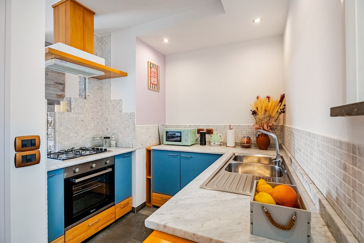 Recent renovat în stil contemporan, apartamentul se bucură de o priveliște spectaculoasă la Golful Napoli, de la Vezuviu la Capri. Situat la ultimul etaj al unei vile istorice cu lift. Penthouse-ul este format dintr-un spațiu de locuit mare, cu o bucătărie deschisă, două dormitoare duble, două băi și o terasă privată. În plus, oaspeții pot beneficia de un loc de parcare privat gratuit în curte, dar acesta nu este păzit.