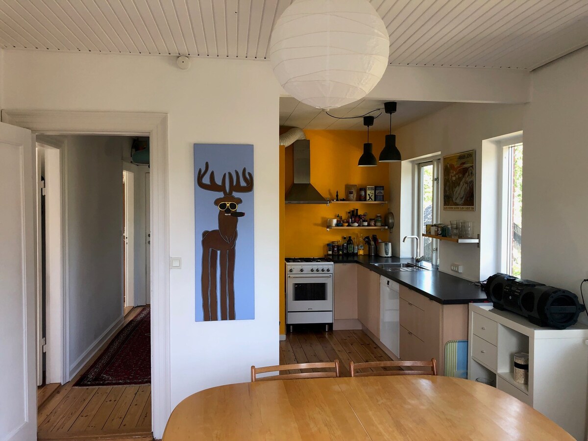 Acest apartament nu este un apartament tipic la subsol, ci un apartament luminos, recent renovat și confortabil, cu ferestre mari, grinzi expuse, precum și o bucătărie privată și baie. Din apartament te uiți parțial în grădină, cu un mic iaz de grădină și în cealaltă parte a curții cu mobilier de grădină, pe care ești binevenit să îl folosești. Apartamentul constă dintr-un dormitor de 18 m2 cu 2 paturi de 160 cm și, respectiv, 140 cm, un hol, baie și bucătărie cu zonă de luat masa. Câinii sunt bineveniți. Aproape de s-train.