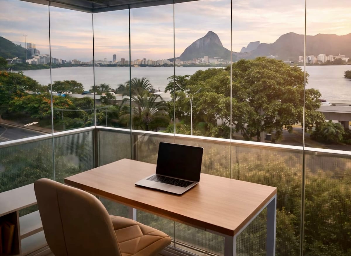 Relaxează-te în acest loc unic și liniștit, cu fața spre o rezervație ecologică, în Lagoa Rodrigo de Freitas. Un apartament proiectat cu fiecare detaliu de frumusețe și confort pentru a te bucura de oraș sau de muncă, lângă „Lagoa”, cele mai bune restaurante și atracții turistice din Rio de Janeiro și American Visa Application Center (CASV).