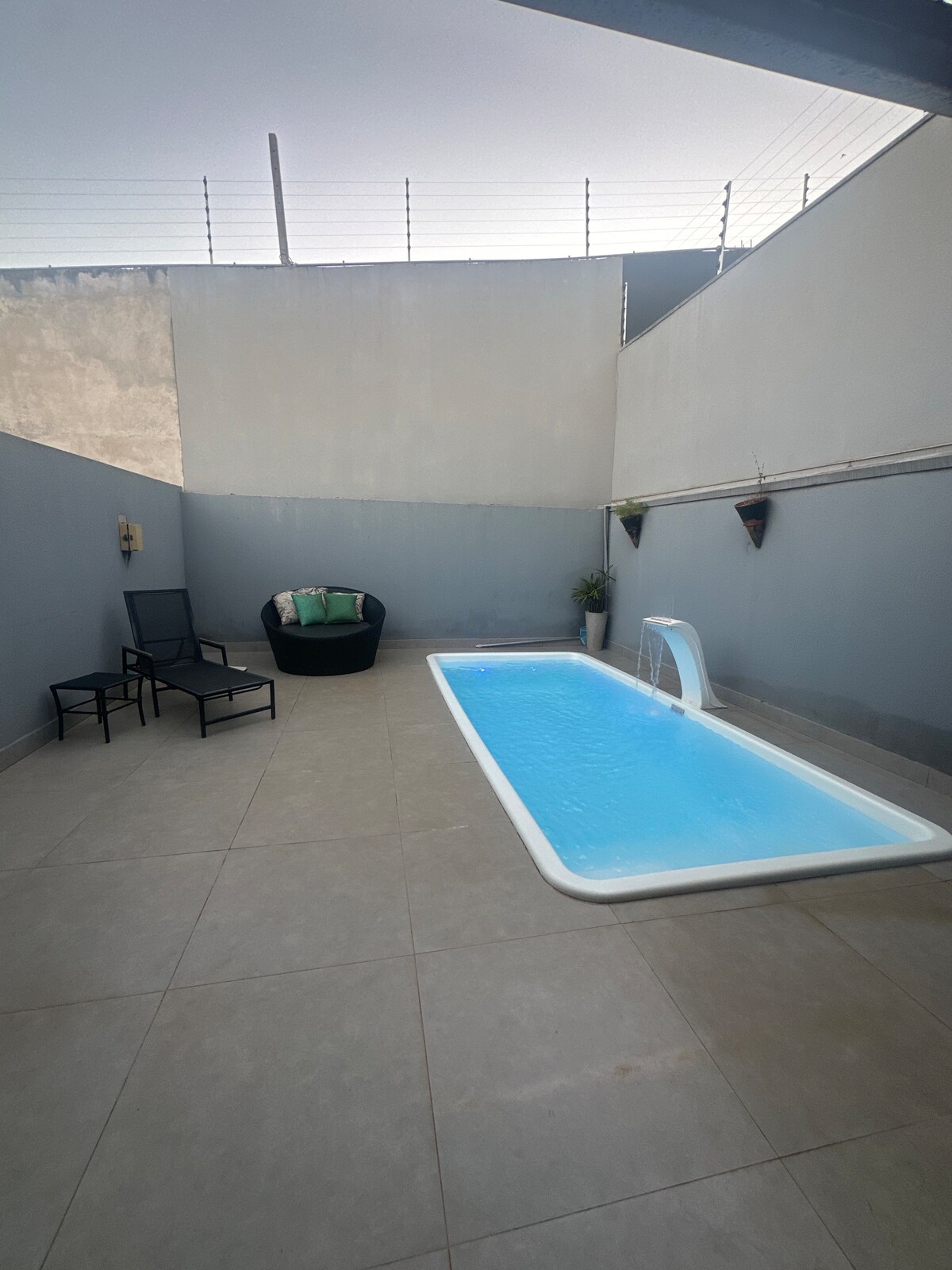 Divirta-se com toda a família neste lugar cheio de estilo e conforto. Localização privilegiada e estratégica, próximos aos principais condomínios de alto padrão da cidade PROIBIDO a acomodação para FESTAS NOTURNAS. A casa possui: - 2 quartos (sendo 1 deles com ar condicionado) - 2 banheiros - Sofá retrátil para acomodar até 2 pessoas. - Cozinha com cookietop/geladeira/MIcrondas /AIr Fry /Cafeteira. - Máquina Lavar Roupa - Área gourmet com piscina e cadeiras para descanso. - Vaga para 2 carros