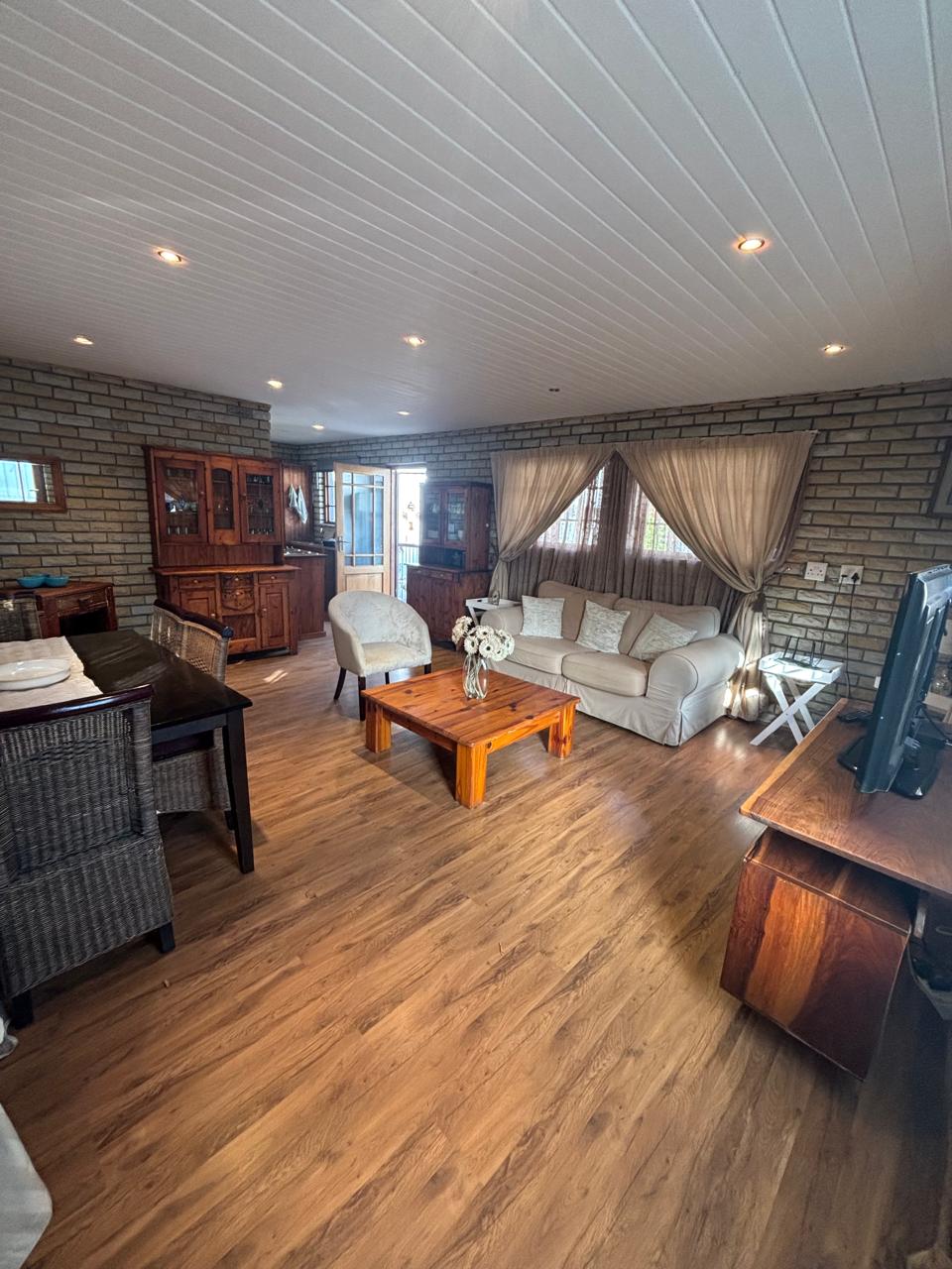 Experimentează luxul și confortul în această unitate împrejmuită cu pereți, promițând liniște sufletească cu securitatea sa de noapte înarmată și parcarea gratuită. Bucură-te de o bucătărie complet echipată în plan deschis, 2 băi spațioase, zonă de luat masa și living cu șemineu și un televizor de 55 inch. Două dormitoare spațioase includ o suită principală cu un colț de studiu și un televizor de 42 inch. Relaxează-te în camera interioară cu grătar/braai, cu aragaz cu lemne, frigider cu bar și chiuvetă. Wi-Fi, DSTV și Netflix neacoperite contribuie la confort. Unitatea se află într-un complex de 4 unități private.
