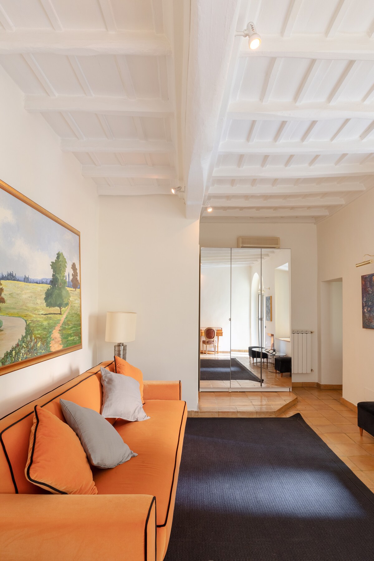 Apartament elegant în Trastevere, Rione istoric la o aruncătură de băț de Piazza Navona, Campo deFiori, Pantheon, Fontana di Trevi și Colosseum. Palatul este al 17-lea construit pe fațada bisericii S. Dorotea. Cartierul este plin de baruri și restaurante istorice la câțiva pași, poți beneficia de frumoasa plimbare pe istoricul Ponte Sisto, care devine magică la asfințit. Proprietarul, de peste 20 de ani, ghid turistic vorbește fluent limba engleză-franceză-spaniolă-portugheză.