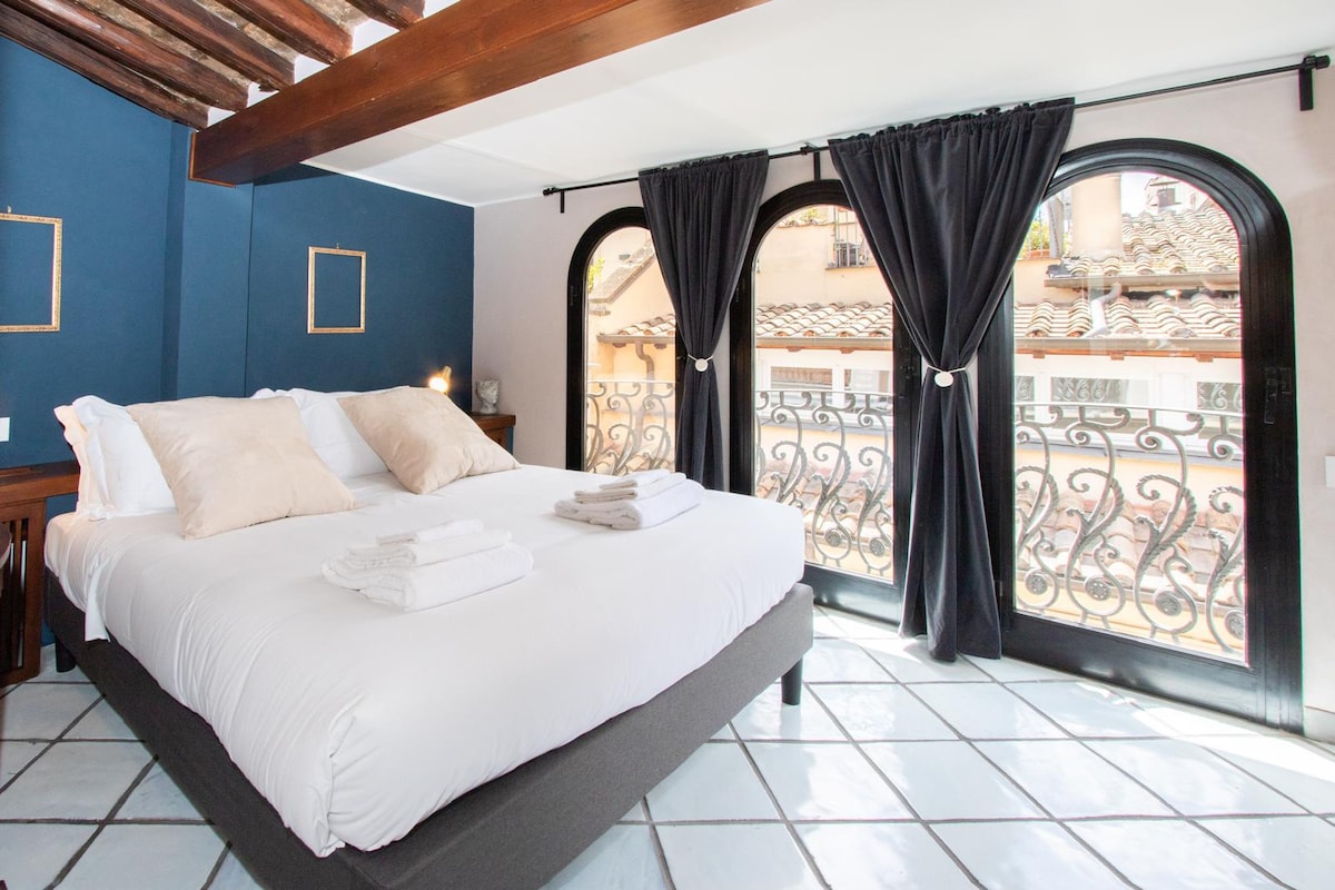 Pășește în splendoare stând în acest apartament unic cu un dormitor din inima Romei istorice, la doar câteva minute de Piazza di Spagna și Panteon. Această locuință este perfectă pentru cuplurile care caută o escapadă în oraș într-unul dintre cele mai frumoase Palazzos istorice din Roma. Este ca o călătorie în timp, dar cu o cadă cu hidromasaj cu baie proprie.