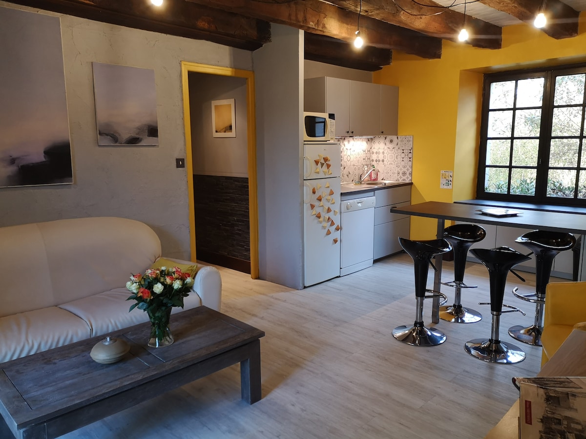 În inima orașului Dinan, lasă-te transportat de eleganța Romei antice. Relaxează-te într-un apartament de lux cu un balneo privat🛁. Bucură-te de confortul unui pat matrimonial cu lenjerie de pat de 🛏️hotel, bucătărie utilată, TV conectat cu Netflix, WiFi cu fibră optică și o terasă intimă. La o aruncătură de băț de Turnul cu Ceas și pitorescul Jerzual. Parcare, restaurante și magazine în apropiere. Totul se îmbină pentru o escapadă romantică de neuitat❤️.
