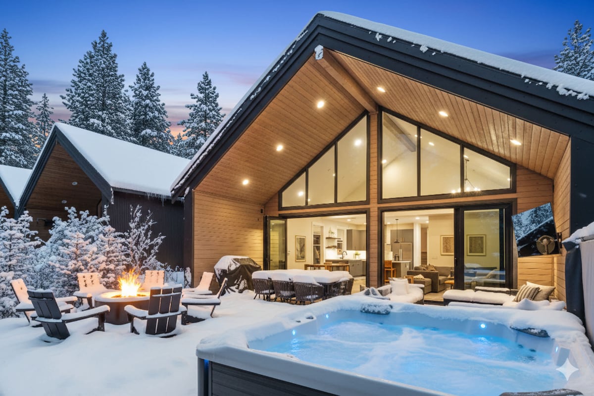 Wake up to fairway views on Prospector's 18th and end the day soaking under alpine stars. This chic 5‑BR, 4‑BA modern‑farmhouse sleeps 23 and puts you steps from tee boxes, minutes to Summit ski slopes, forest trails, breweries, and dining. After golf, hikes, or powder runs, melt into the hot tub or gather around the cozy outdoor fireplace or grill. Indoors, a sun‑splashed great room invites conversation, while a game loft—PS5, Xbox, VR rig, foosball & more—keeps kids (and grown‑ups) thrilled.