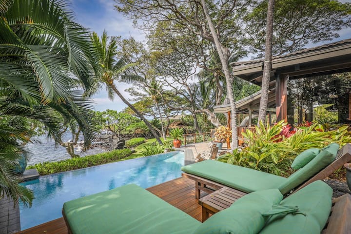Hale Ali'i Honu Kai este un refugiu de 5.000 de metri pătrați, cu vedere la ocean, cu tavane înalte, vedere panoramică, paravane shoji și uși telescopice din sticlă care îmbină luxul interior cu natura. Bucură-te de grădini luxuriante, de o verandă de 15 metri, de o piscină infinită pe malul oceanului și de un front oceanic privat rar de 90 de metri. Un sanctuar liniștit în inima orașului Kona, perfect pentru relaxare și conectare.