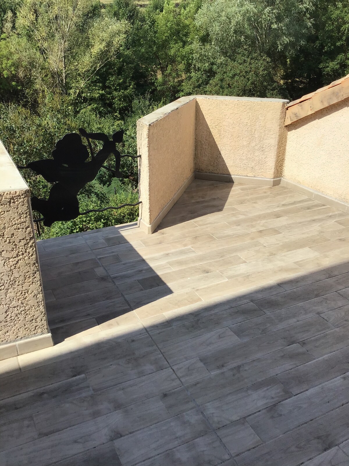 Apartamentul se află la parterul casei noastre. Este independent de etajul 1 unde locuim, fără trepte și oferă o terasă frumoasă acoperită, orientată spre sud. Casa noastră se află într-o zonă rezidențială foarte liniștită, aproape de centrul orașului Saint-Affrique și de toate dotările sale.