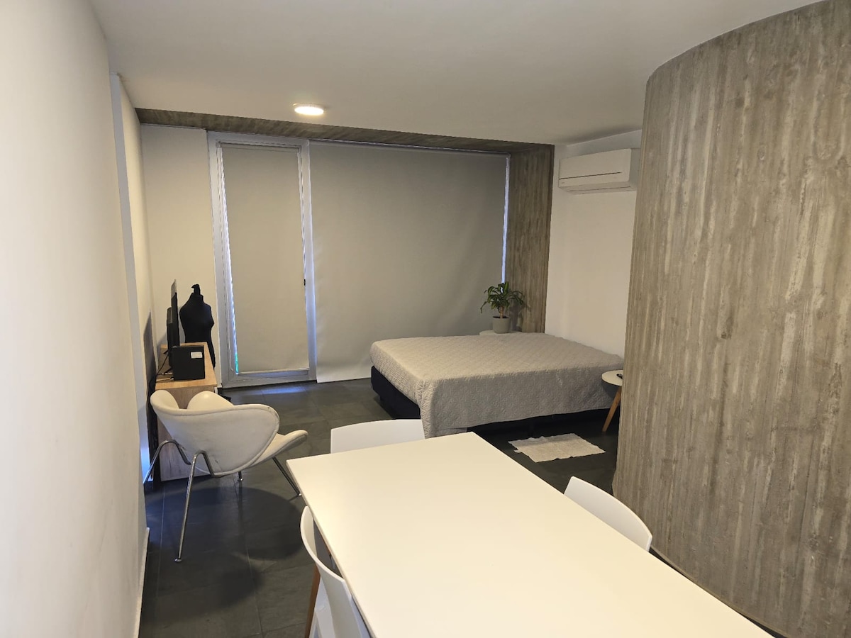 Trezește-te în inima centrului istoric, la câțiva pași de Monumentul Steagului și de râul Paraná. Acest apartament modern și luminos oferă combinația ideală de locație, confort și liniște pentru a te bucura de Rosario ca un localnic. Cu 33 m² proiectați cu atenție, este perfect pentru odihnă, muncă sau escapade în cuplu. Spațiul are aer condiționat cald/rece, Smart TV și WiFi rapid, toate pregătite pentru a-ți face șederea confortabilă din primul moment.