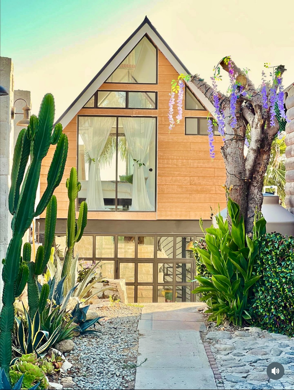 Una experiencia mágica que te tranporta a un ambiente sereno y encantador. La propiedad cuenta con una casa de huéspedes de dos cuartos con una cama king y dos camas queen. Hay dos baños completos y cocina completamente equipada. Aunque forma parte de la casa principal, la propiedad es completamente independiente. También cuenta con jardines y muchas áreas para comer y relajarte. Queda a 10 minutos caminando de la playa y está cerca de mercados, hospitales y cines.