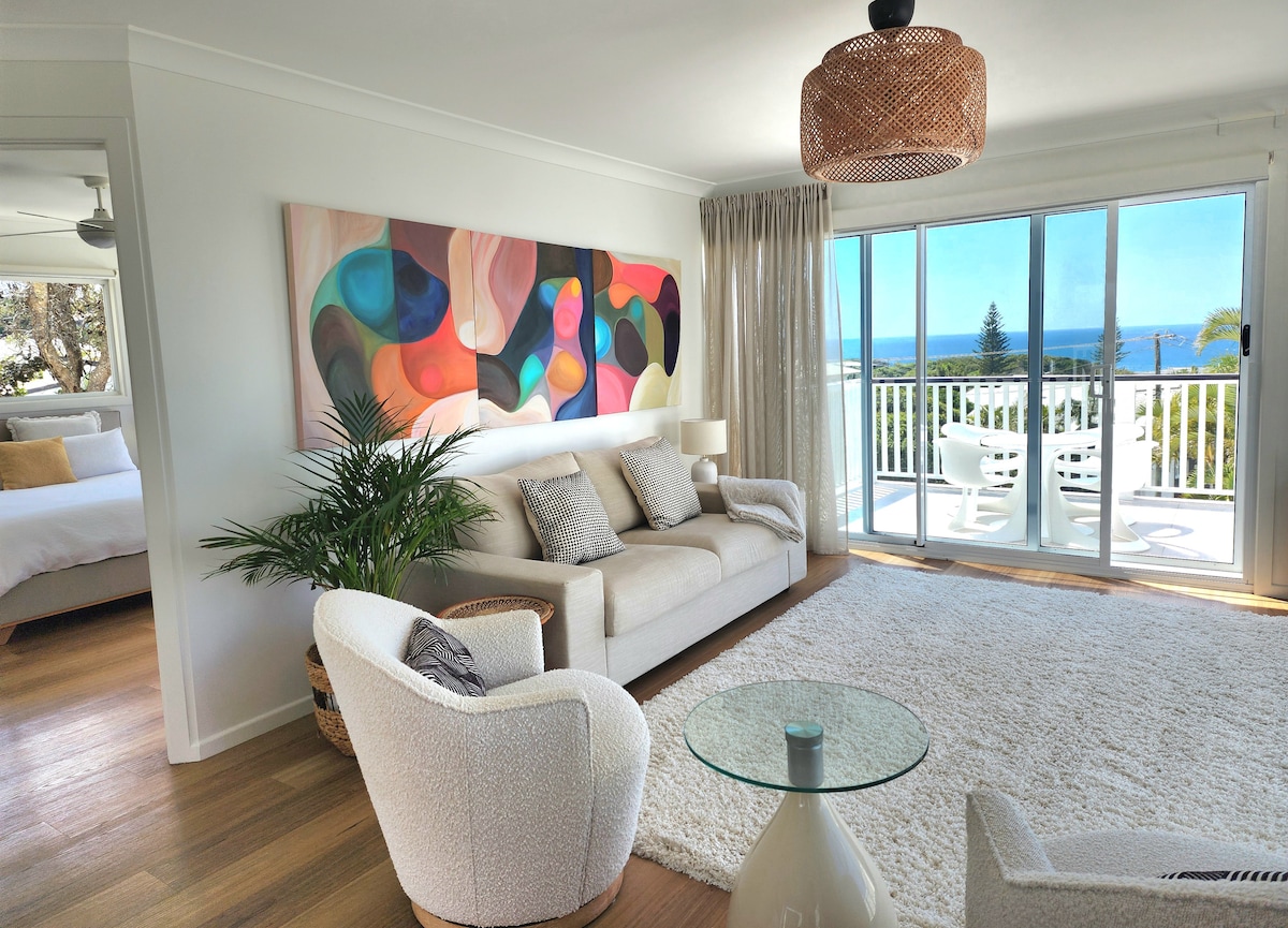 Escape to this unique part of the Sunshine Coast with its stunning uncrowded beaches, great coffee shops and restaurants, all within minutes walk of your Apartment. Exercise options abound from beach activities, shaded walking paths to climbing Mt Coolum, golf, or just relaxing. Noosa National Park is an easy 20 minute drive, or the hinterland towns are a wonderful day trip. You’ll enjoy your own space with everything you need to relax, including natures calming ocean sounds for sleeping.