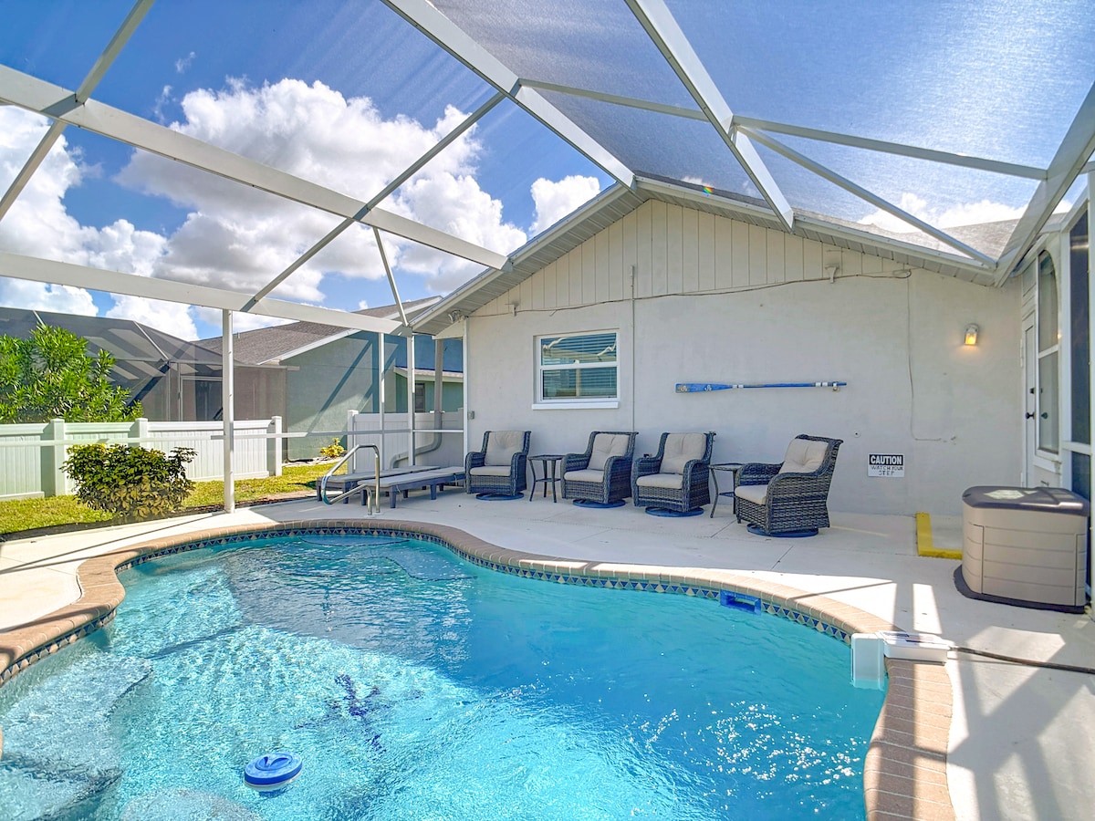 Escape to this stunning 3-bedroom, 2.5-bathroom home in a tranquil neighborhood. With an open floor plan, cozy fireplaces screened lanai with pool and hot tub, and an outdoor shower and BBQ kitchen area, it's the perfect retreat. We offer complimentary pool heating to 78°F and jacuzzi heating to 90°F so you can enjoy year-round comfort. If you'd like warmer settings, we can accommodate for an additional charge of $22