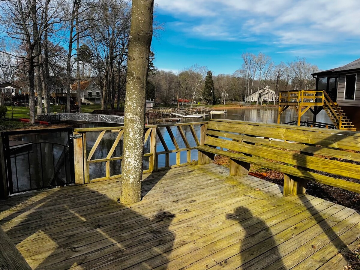 * Animalele de companie nu sunt acceptate* *Fără petreceri mari * - Doc privat - 3 caiace - 7 paturi (3 regine, 4 paturi supraetajate) - 5 televizoare (65”, 43”,43”, 43”,32”) - 4 dormitoare /2 băi - Poziție liniștită - Groapă de foc - Grătar cu cărbuni - Mese de picnic - Cină în exterior - Vedere imensă Construiește amintiri de durată în timp ce faci caiac, pescuiești, faci grătar, faci s'mores și relaxează-te pe lac. Unitate privată cu pietriș, la 10 minute de I-85, la 1 oră de mers cu mașina de Charlotte. Statutul NCGA 168-4.5: Este ilegal să deghizezi un animal ca animal de asistență sau animal de asistență în formare.