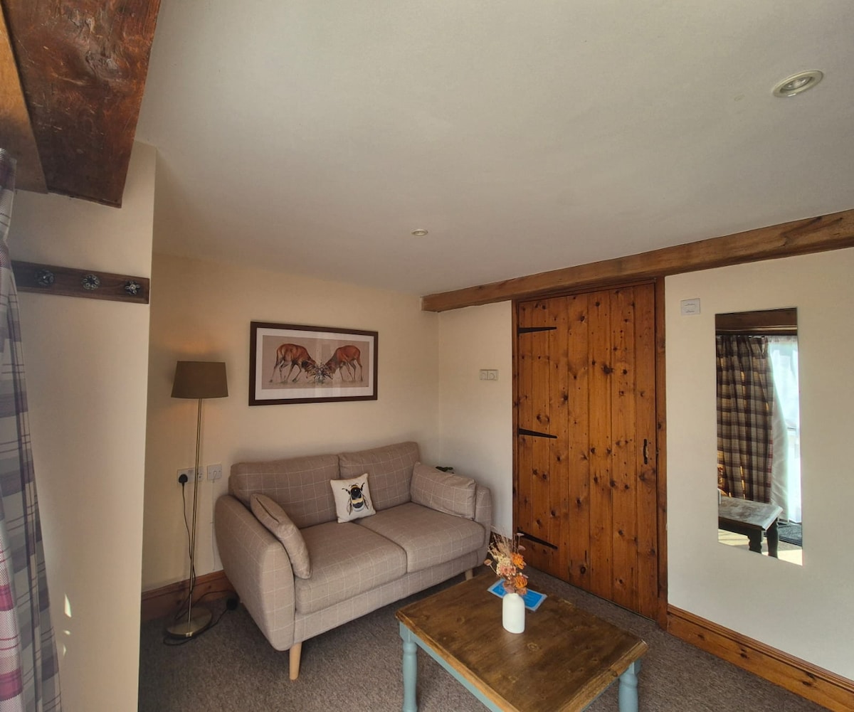 Small barn in the midst of a working Dairy and sheep farm right next to our home with fabulous walks all around. Double bed with small shower room and mini kitchen area in the corner of the room. Ideal as walking base or base when working in the area. Good parking just outside the barn - vehicles can be left whilst you walk the glorious hills around. Cooked breakfast available in the dining room in the farmhouse for £10 per person - includes the choice of sausage, bacon, eggs etc.