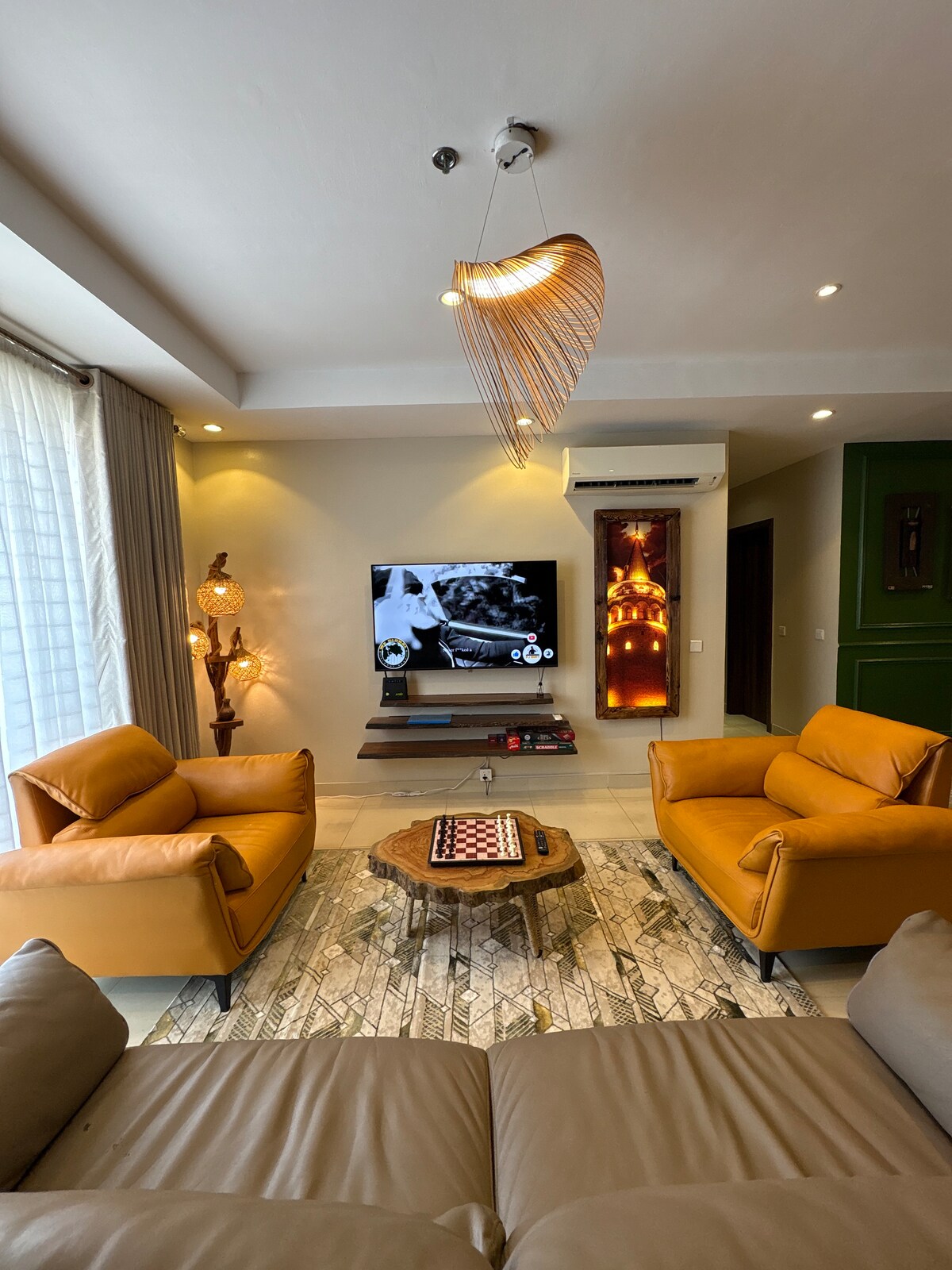 Descoperă Sandstone by Nivana, un apartament de designer liniștit, cu 2 dormitoare, în Lekki Faza 1. Cu tonuri calde de nisip și lut, un perete de nișă cu semnătură, interioare sculptate și confort de hotel, este un amestec de artă și lux. Bucură-te de Wi-Fi rapid, Netflix, alimentare 24/7 și o bucătărie complet utilată - la doar câteva minute de restaurante de top, cafenele, lounge etc. O ședere perfectă pentru cupluri, profesioniști și iubitori de design.