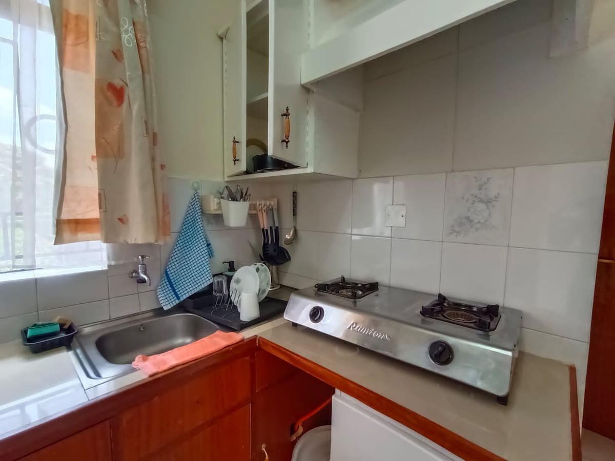 Kb ventures Home is a serene modern well furnished one bedroom which offers a homely feeling away from home. It has a fully equipped kitchen,Fresh water is available. Self check in. It’s situated about 20 minutes from the airport(depending on traffic) Nyayo estate is a gated community with 24hrs security. We have secure parking spot on the property. Shopping center is available on site. I welcome you to feel at home and make memories in this amazing apartment.