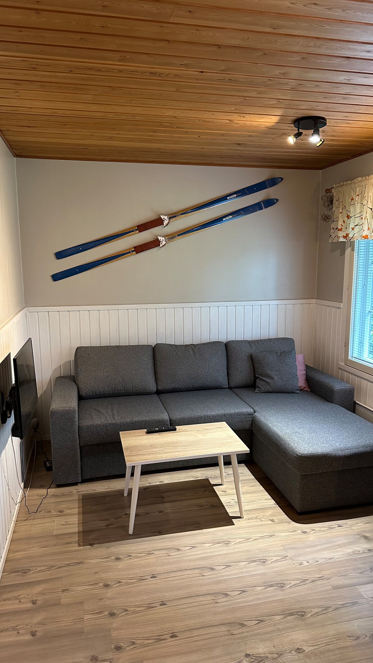 FREE SKITICKET (1 pcs)! Enjoy the ease of life in this peaceful property. Located right in the heart of Ruka center, it offers a central location while being positioned on the outer edge. The slopes are 50 meters away, and all amenities are right at your doorstep. The apartment is spacious enough for a couple or a family of five. Large bedroom where the beds can be separated, and the open-plan kitchen/living room has a pull-out sofa and a pull-out chair. A ski storage room is available for use.