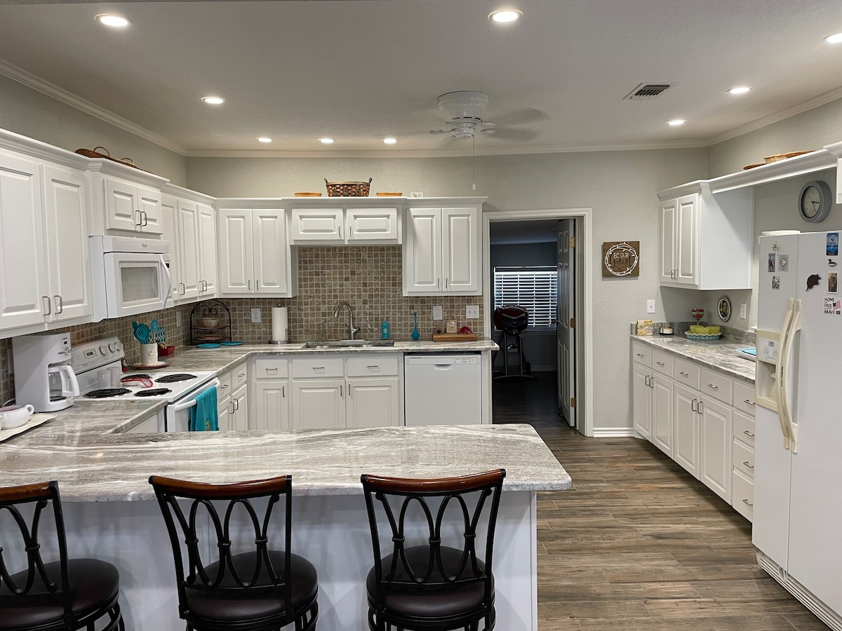 Big Red Barn este situat la Moo & Bray Farm, o fermă de patruzeci de acri care ridică vaci de munte și mini măgari printre alte creaturi. Relaxează-te pe veranda acoperită și privește vitele cum pasc sau ascultă măgarii. Bucură-te de apusurile de soare din Texas, de un foc sub stele sau hrănește animalele cu mâna. 🐴🫏🐴🐢🦚🐮🐖
