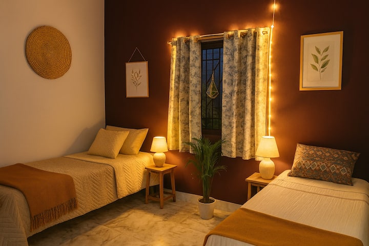 Aeroport 3 km • Privat 1-BHK• Bucătărie•AC•TV•Wi-Fi