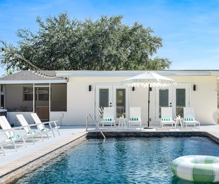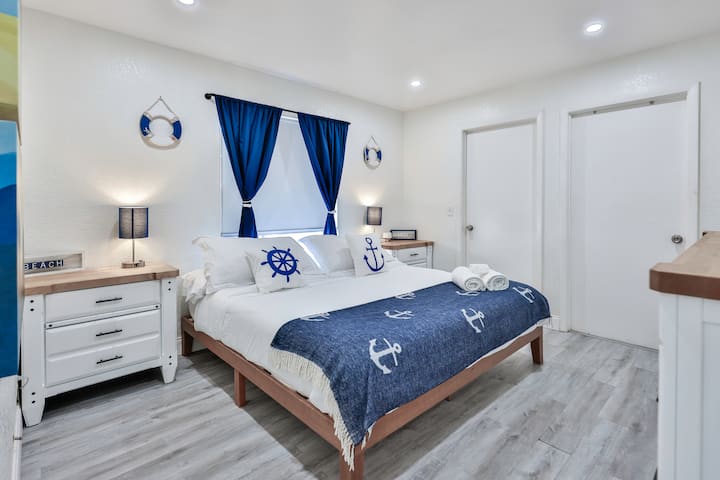 Modern 2BR/1BA, pat matrimonial, spălătorie, bucătărie, curte pavată, Hydr