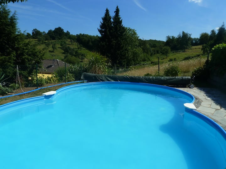 Piscină cu plajă în natură, cadă cu hidromasaj, saună, tușe pentru drumeții