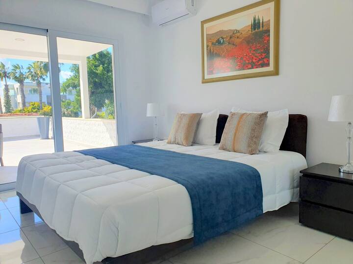 Vilă cu pat de la picioare cu nisip și cameră cu pat de