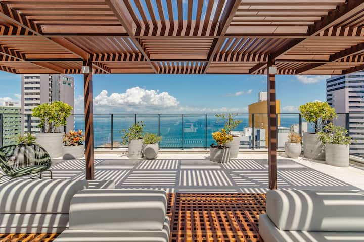 Studio premium fermecător în Barra cu vedere la mare și piscină