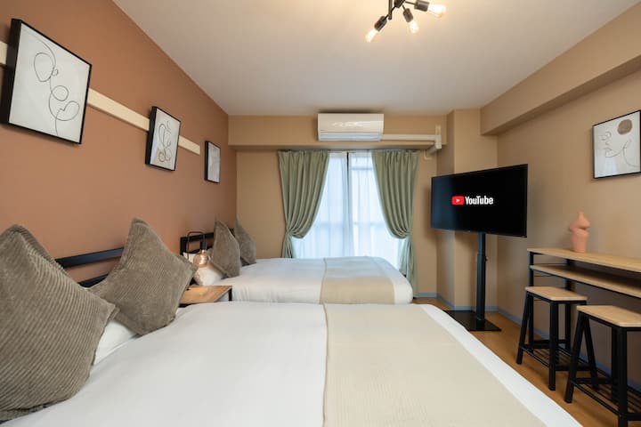 [Dragon Cat Homestay - Umeda store 302 Tenjinbashisuji 6-chome station 5 minute pe jos/4 minute cu tramvaiul până la Higashi Umeda/camera cu pat dublu poate găzdui până la 4 persoane