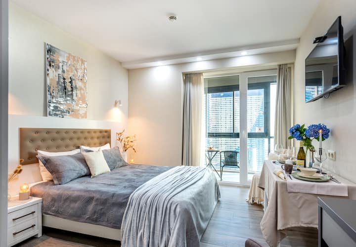 Cameră în apartamentul Orbi City la etajul 31 de la gazdă.