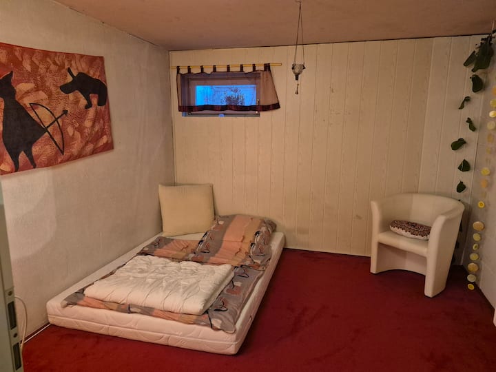 Cameră la subsol, covor, încălzire, saltea bună