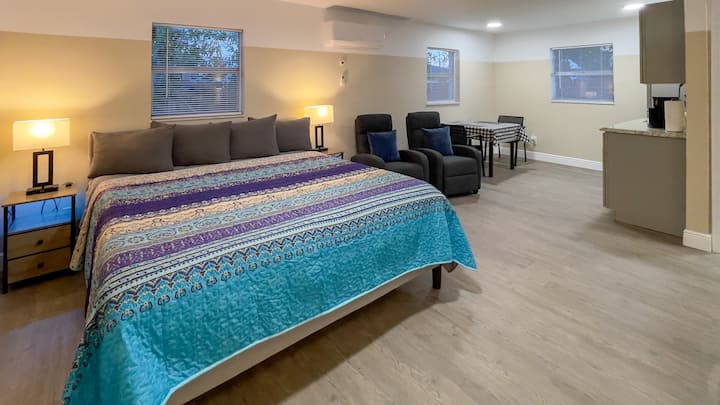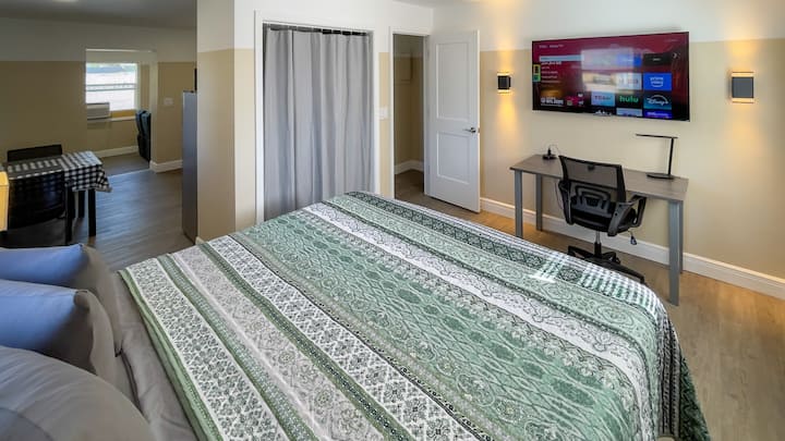 Apartament mic, proaspăt, cu 2 camere și pat king-size