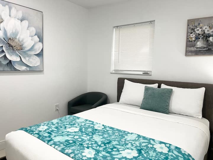 Pat matrimonial modern 1BR/1BA, duș cu hidromasaj, birou, kitche
