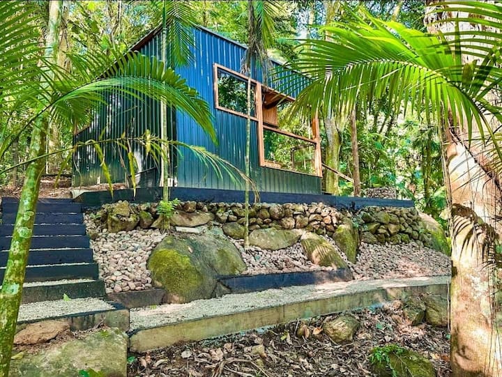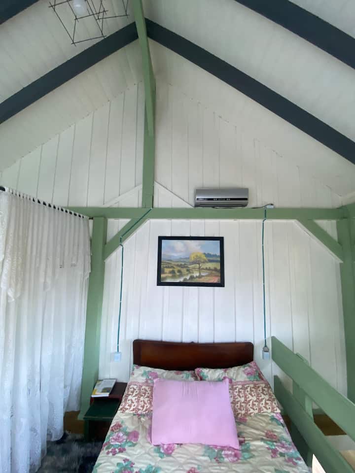 Cabana are o bucătărie completă, inclusiv aragaz cu lemne, două dormitoare, baie, living și o livadă frumoasă