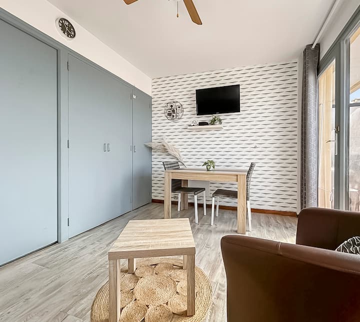 Studio confortabil, terasă și fibră • Plajă la 30 m