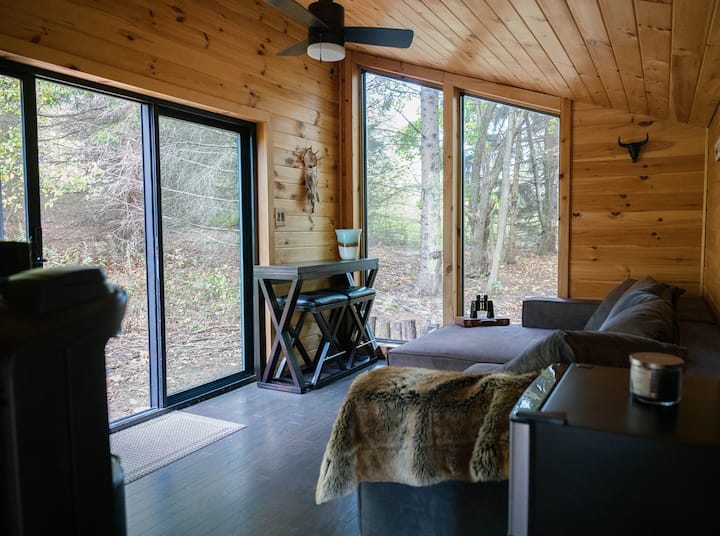 O cabană liniștită cu o priveliște frumoasă pe 90 de acri.>