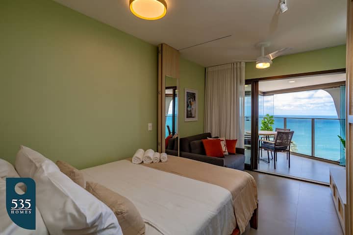 Studio premium fermecător în Barra cu vedere la mare și piscină
