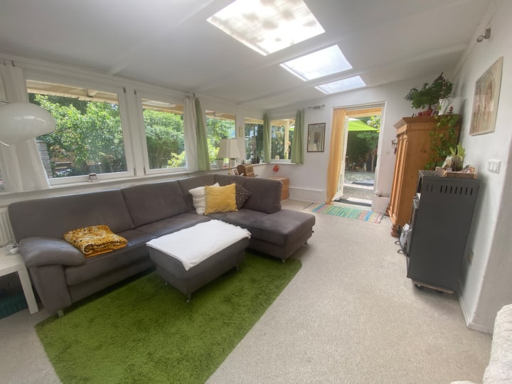 Cameră luminoasă frumoasă, cu grădină