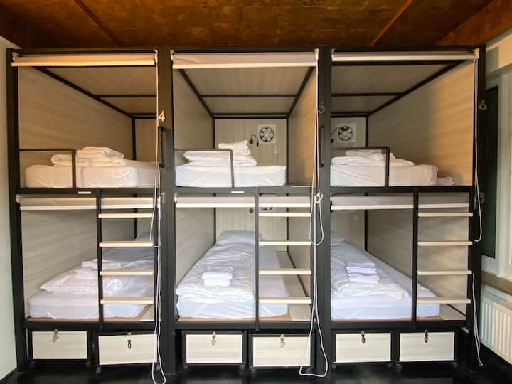 Pat în cameră cu 8 paturi în hostel în centrul vechi