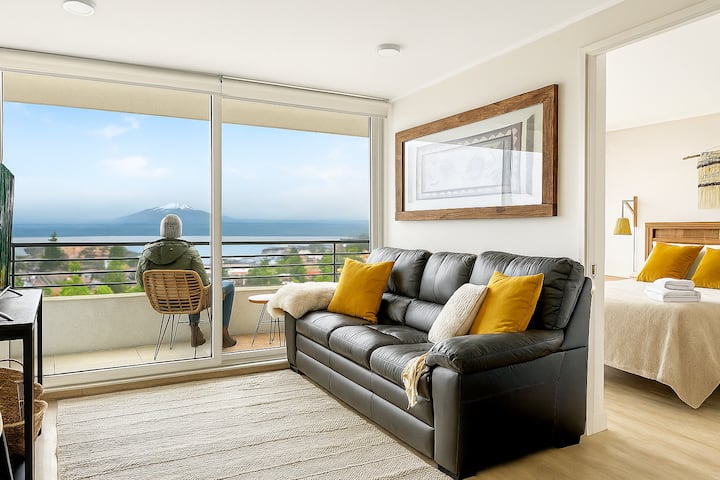 Apartament nou, confortabil, cu vedere la lac și vulcani.
