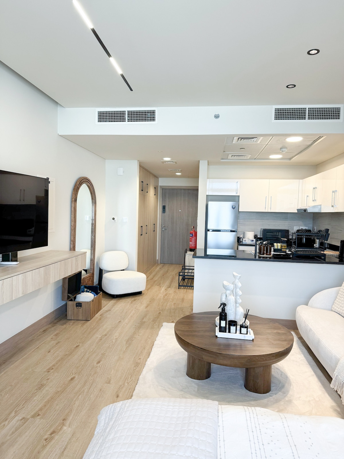 Studio în stil japonez în Piața Soho, Insula Saadiyat. Ideal pentru șederi de lungă durată, muncă la distanță sau un city break liniștit. Complet mobilat, cu Wi-Fi de mare viteză, bucătărie, piscină, sală de gimnastică și parcare securizată. Se poate merge pe jos până la NYU Abu Dhabi, Luvru și Soul Beach. Calm, luminos și atent conceput pentru confort și funcționare. Bucură-te de un spațiu liniștit, îngrijit, cu tot ce ai nevoie pentru a te simți ca acasă, indiferent dacă ești aici pentru un weekend sau o lună.