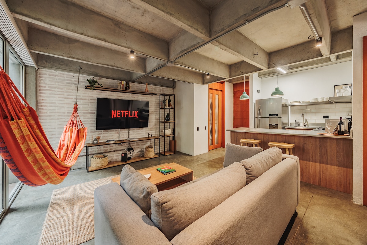 • Poziție uimitoare. El Poblado. Cea mai bună zonă din Medellin. Pași către restaurante excelente, cafenele, supermarketuri non-stop • Cadă cu hidromasaj privată în loft + căzi cu hidromasaj în zonele comune • Aer condiționat • Wi-Fi de mare viteză de 300 Mb (router în loft) • Loft modern, independent, complet mobilat într-o clădire cu alte loft-uri private • Personal non-stop la locație • Cartier extrem de sigur • Smart TV de 43"cu aplicații inteligente • Bucătărie echipată • Strict curățată • Prețuri transparente. Fără taxă pentru oaspeți suplimentari (vezi regulile), fără taxe suplimentare