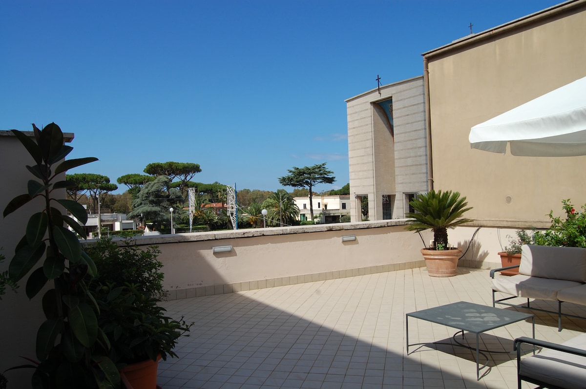 Apartament elegant cu 2 TERASE, în centrul orașului Sabaudia, primitor și luminos, mobilat într-un mod modern și funcțional pentru călătorii din întreaga lume. Situat într-o poziție strategică și departe de zgomotele puternice. În 1 minut cu mașina (10 pe jos) poți ajunge în CENTRU. Sub casă se află supermarketul CONAD, magazinele și barurile pentru micul dejun.