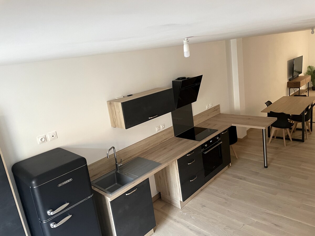 Bucură-te de o ședere confortabilă în acest apartament de lux complet renovat, situat în centrul orașului, în inima vieții locale. Conceput ca un adevărat cocon modern, apartamentul este ideal pentru un sejur romantic sau profesional. De asemenea, poate găzdui până la 4 oaspeți, într-un cadru liniștit și rafinat.