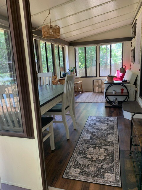 În apă, un debarcader cu două etaje. Inițial construit în 1939 și a parcat bărci până în 1972. Transformată în spațiu de locuit la începutul anilor '80. Etajul constă dintr-un dormitor de mers pe jos în dulap și un balcon. Parterul este un living, bucătărie și baie. Ieși pe ușa curții , a docului și a plajei! Nu vei găsi nimic mai aproape de apă! Balconul este locul perfect pentru a urmări apusul soarelui, furtunile sau pentru a-ți savura cafeaua de dimineață. Ai grijă la pești pe fereastră!